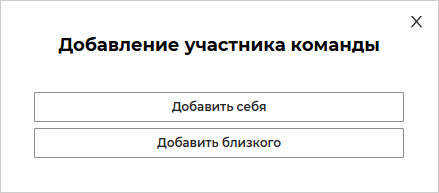 4. В открывшемся окне “Добавление участника команды” выберите, кого вы хотите добавить: себя или близкого.